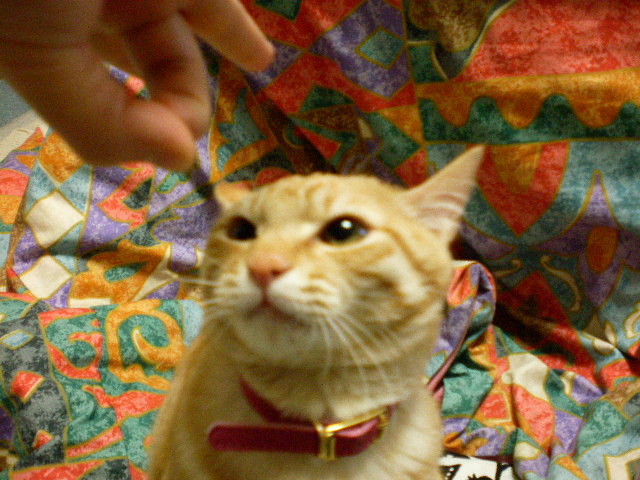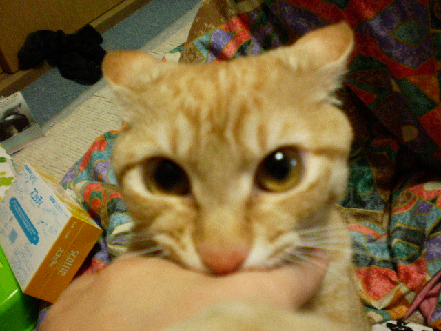 このねこ、でこぴんしようとするとすごい顔でにらみます!