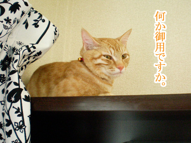 この時間の猫はといいますと、本棚の上でございました。
